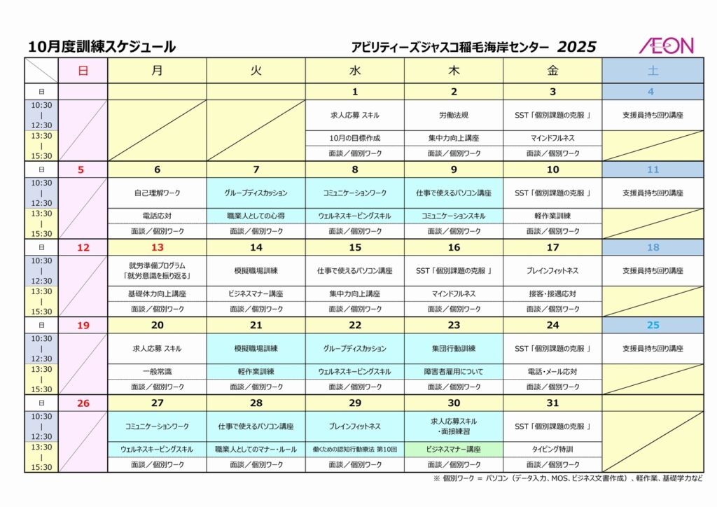 (下記は、【稲毛海岸】10月の訓練スケジュールです。)
