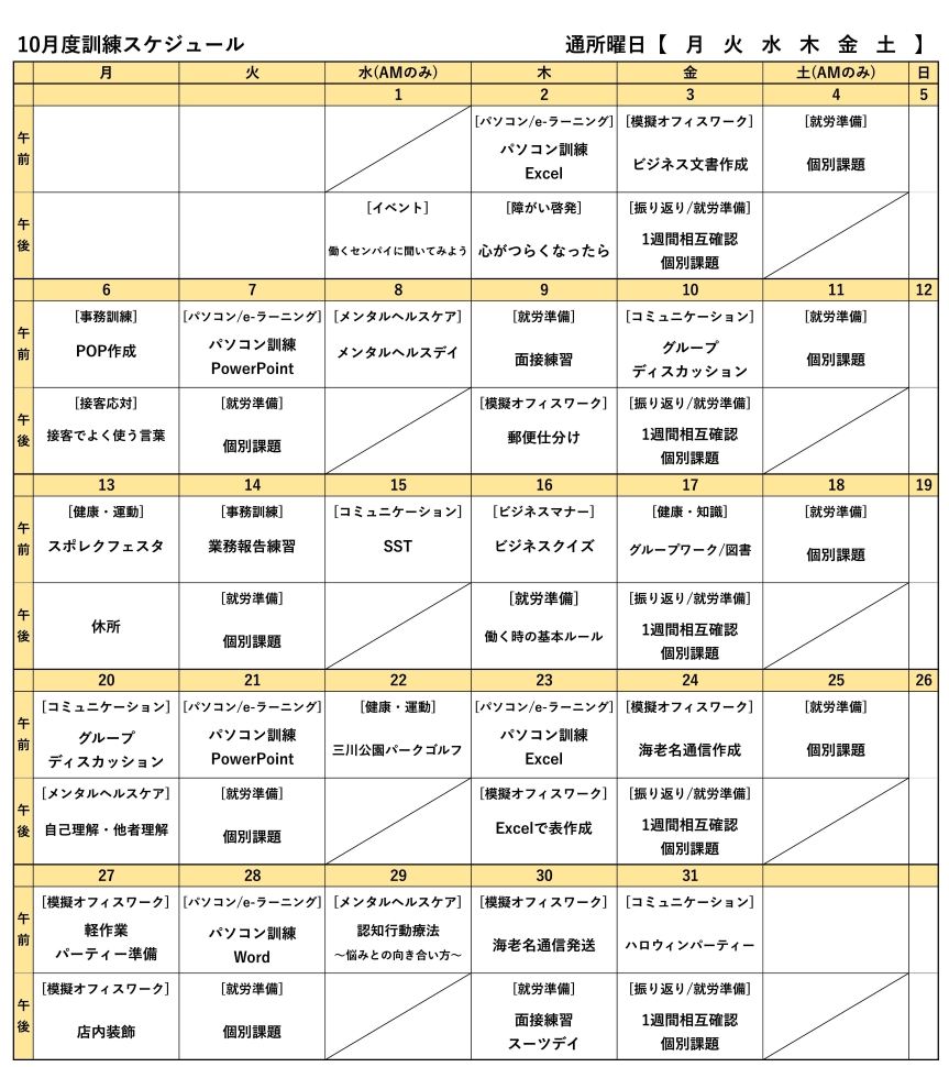 本日は2025年10月度の訓練スケジュールをお知らせいたします。