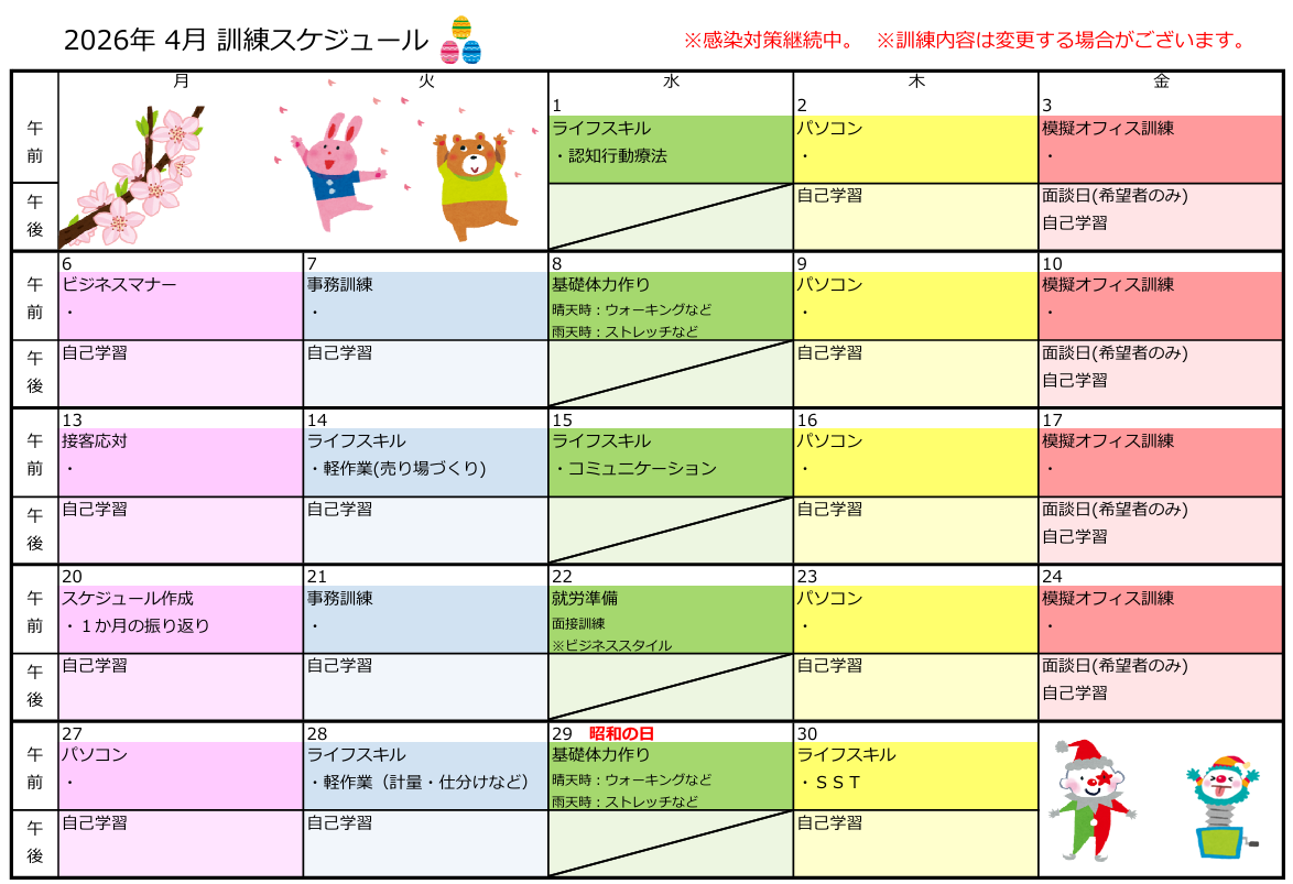 【木更津】4月の訓練スケジュールをお知らせいたします