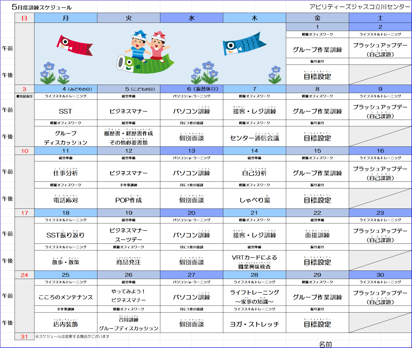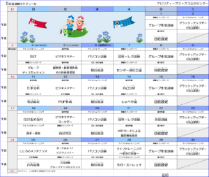 5月の訓練スケジュールを掲載します。