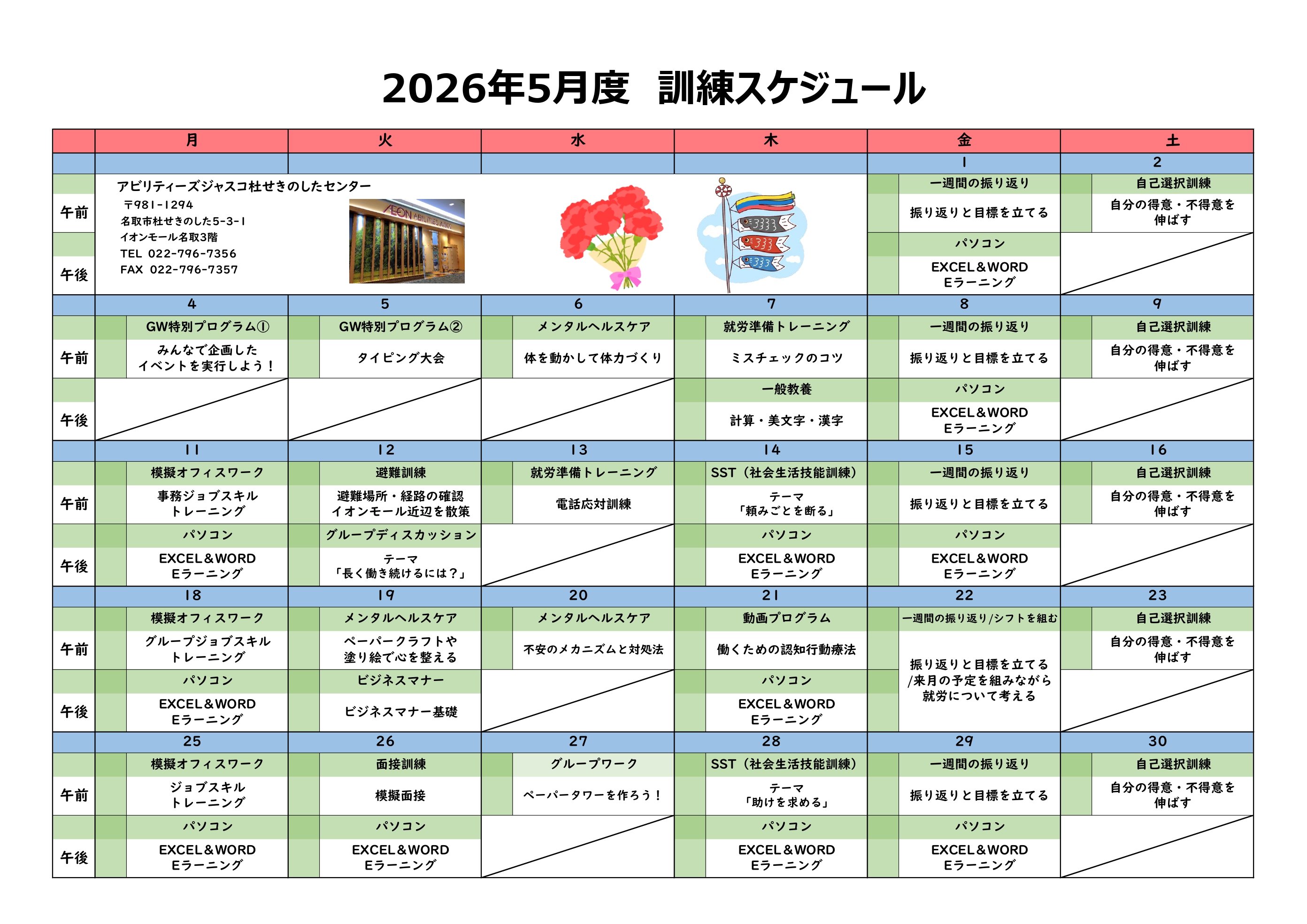 2026年4月の訓練スケジュールをお知らせいたします。